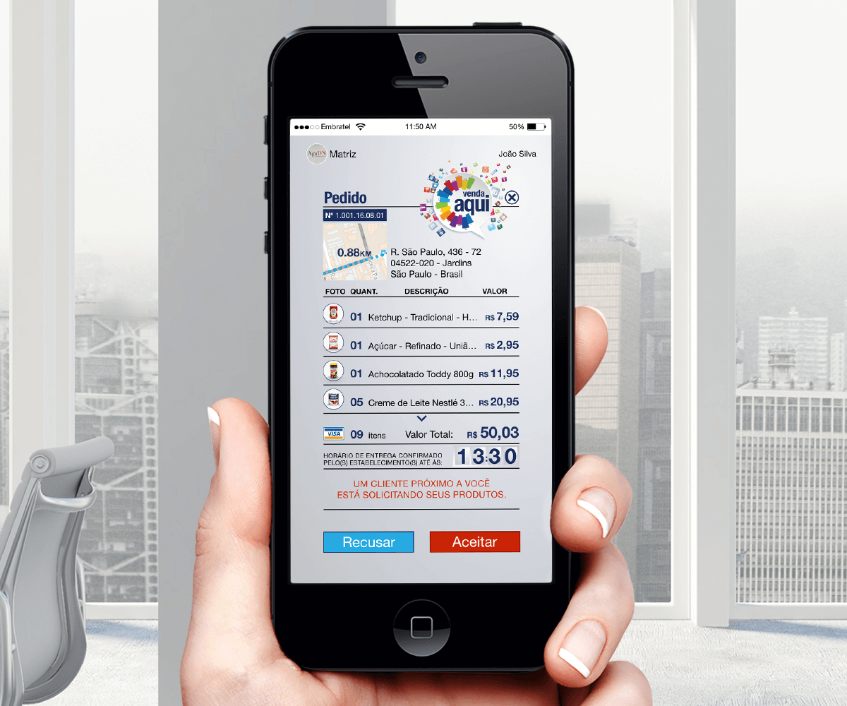 O CompreAqui®App não vende produtos. Pede para entregar.